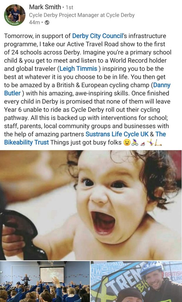 More gushing words came from Mark Smith, who has led Cycle Derby for 14 years, in his below personal LinkedIn post.